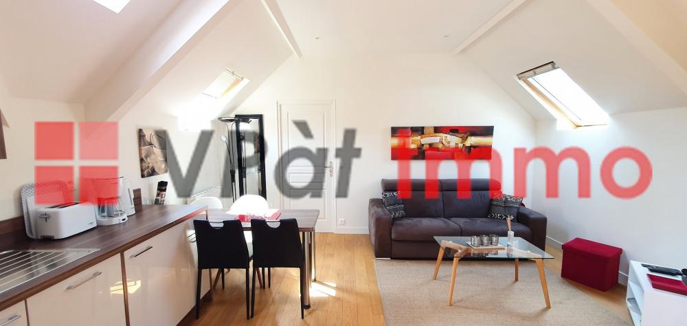 Cet appartement se compose d'un salon-salle à manger avec cuisine ouverte et équipée, une chambre avec rangements et espace bureau, une salle d'eau avec WC.