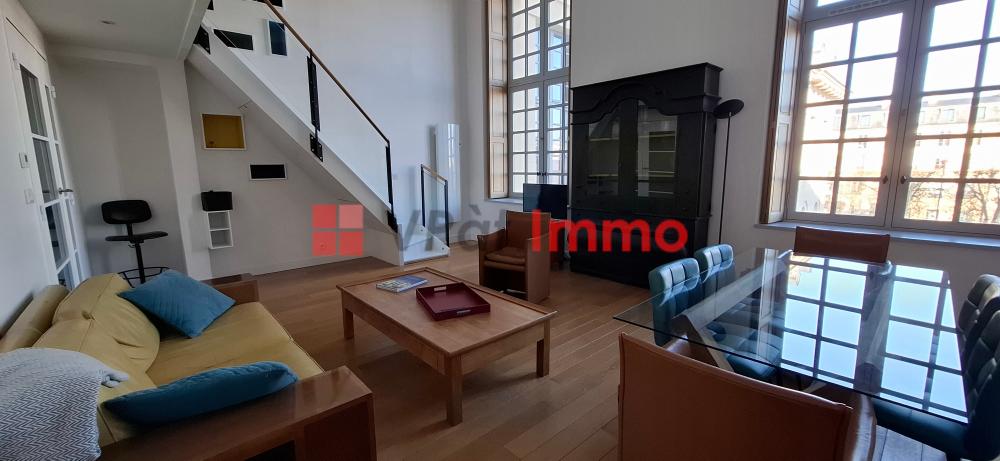 Venez découvrir cet appartement meublé de 66 m², de très bon standing disposant de 3 pièces, au 1er étage avec ascenseur comprenant : une cuisine entièrement équipée, un séjour-salle à manger de 20 m² avec plus de 5 mètres de hauteur sous plafond, un espace bureau, une chambre avec placards, une seconde chambre, une salle d'eau avec WC.