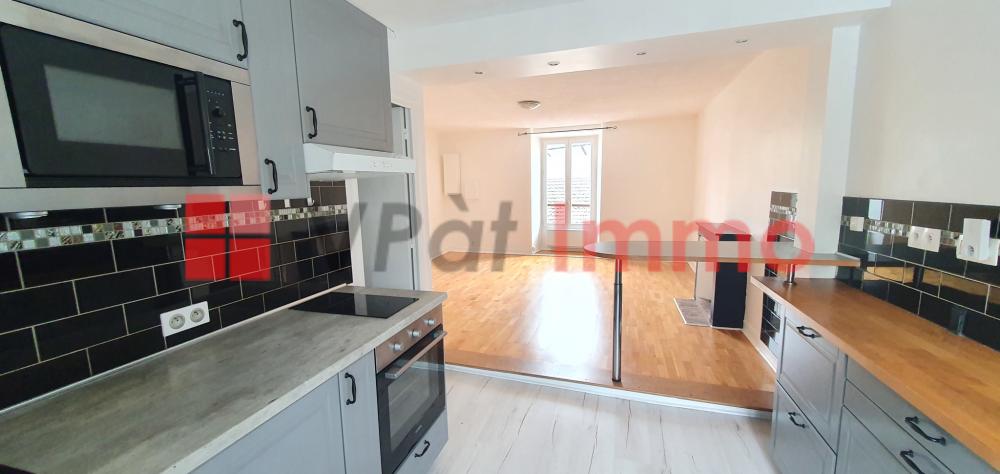 une belle pièce principale avec cuisine ouverte aménagée et équipée et coin bar, une salle d'eau avec WC.