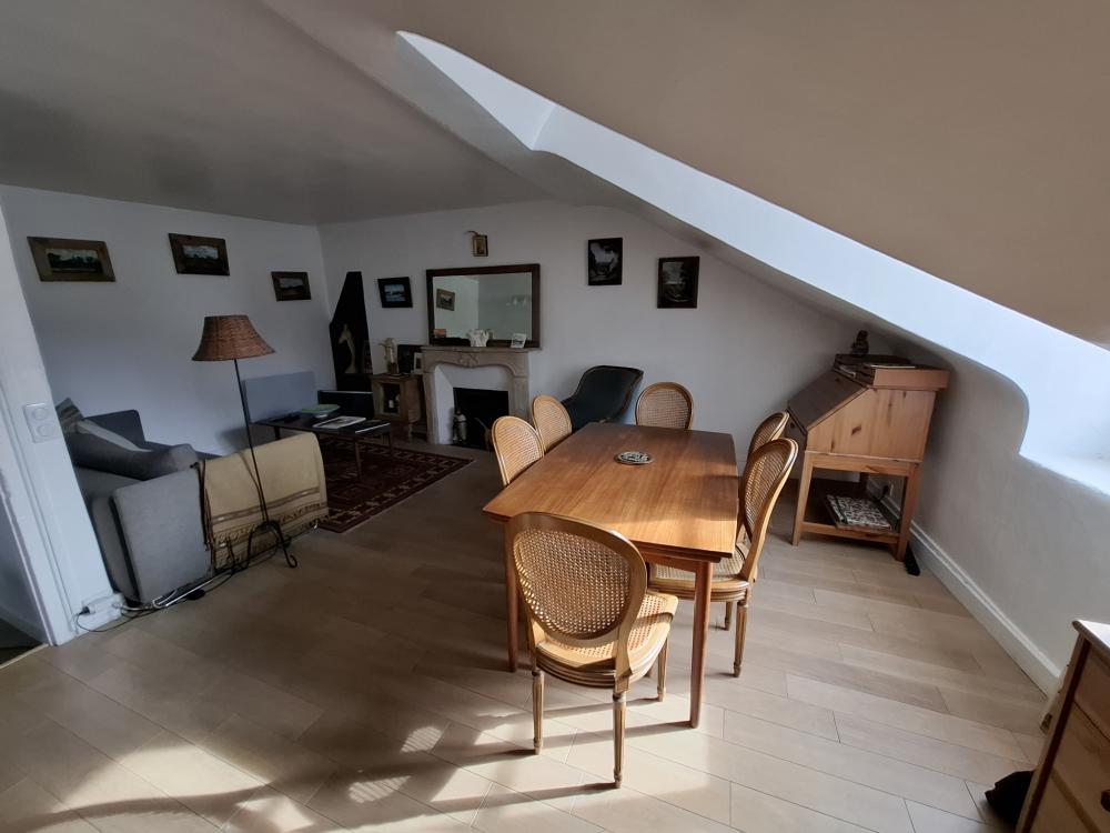 Le séjour de 18 m2 séduit par sa cheminée décorative et son volume agréable. On y retrouve le caractère de l’ancien avec un parquet massif qui donne chaleur et authenticité à l’espace.