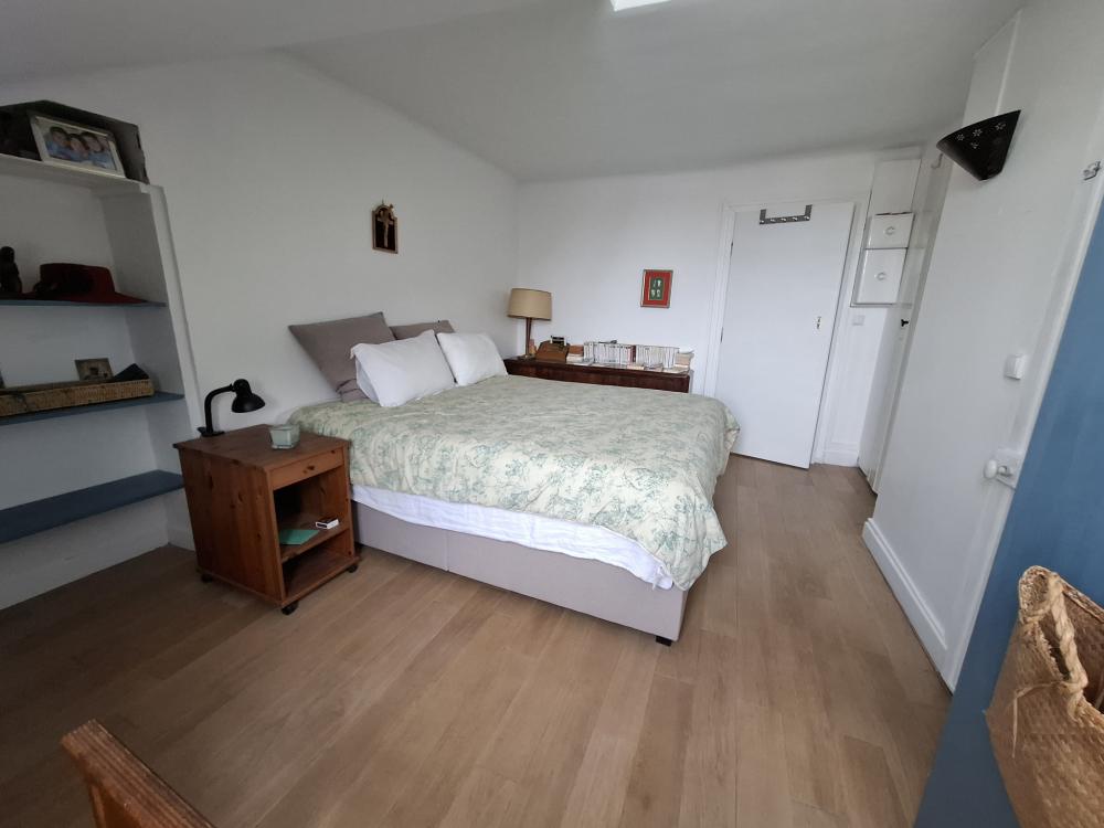La chambre, au calme, donne sur une vue dégagée sur les jardins voisins. Elle est agréable, idéale pour une personne seule ou un couple. La salle d’eau avec WC est sobre et bien agencée.